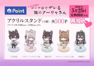 TVアニメ『時々ボソッとロシア語でデレる隣のアーリャさん』アニメイトポイント景品 アクリルスタンド 再投入決定しました。